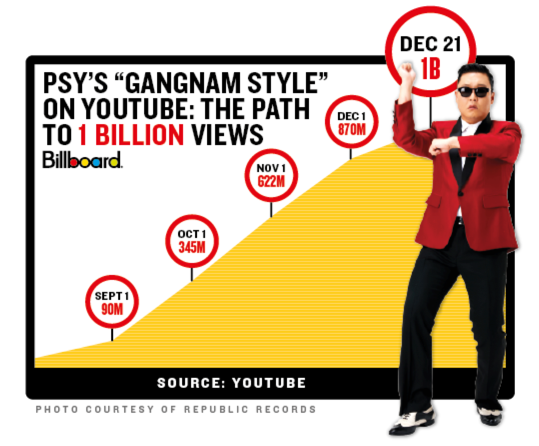 This morning (Dec. 21), Psy's mega-hit reached this unprecedented milestone just 27 days after surpassing Justin Bieber's "Baby" as the most watched video on YouTube.